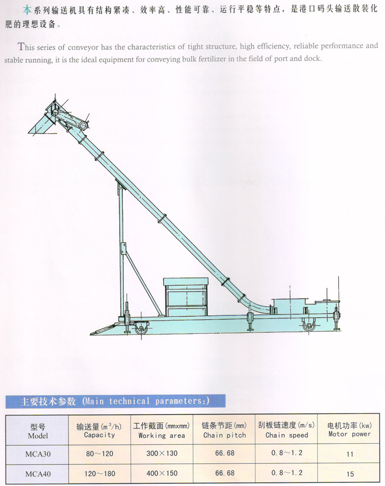 • MCB series self-cleaning inclined scraper conveyor